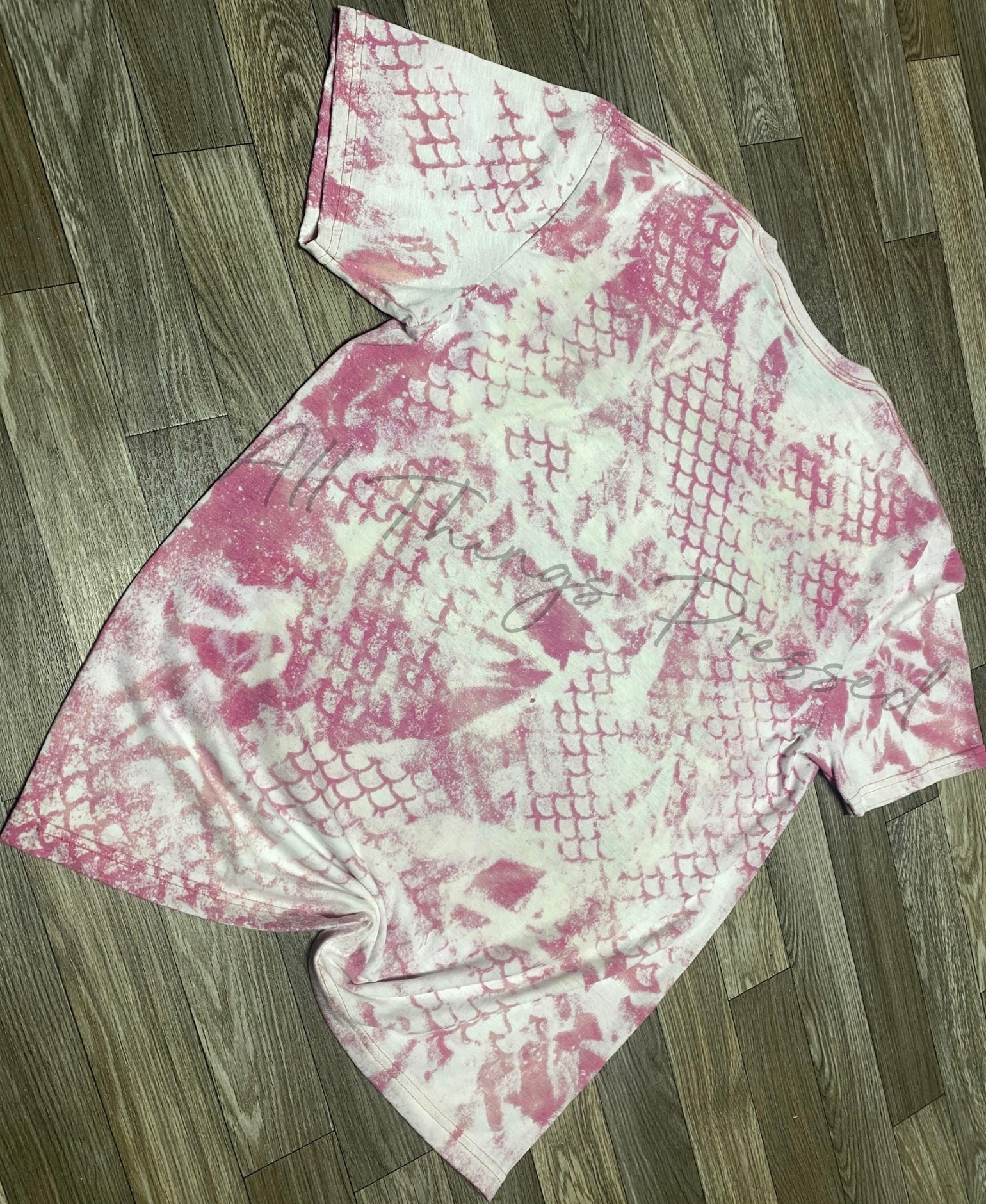 - Bleaching process. Every shirt will vary on how they bleach and be unique.