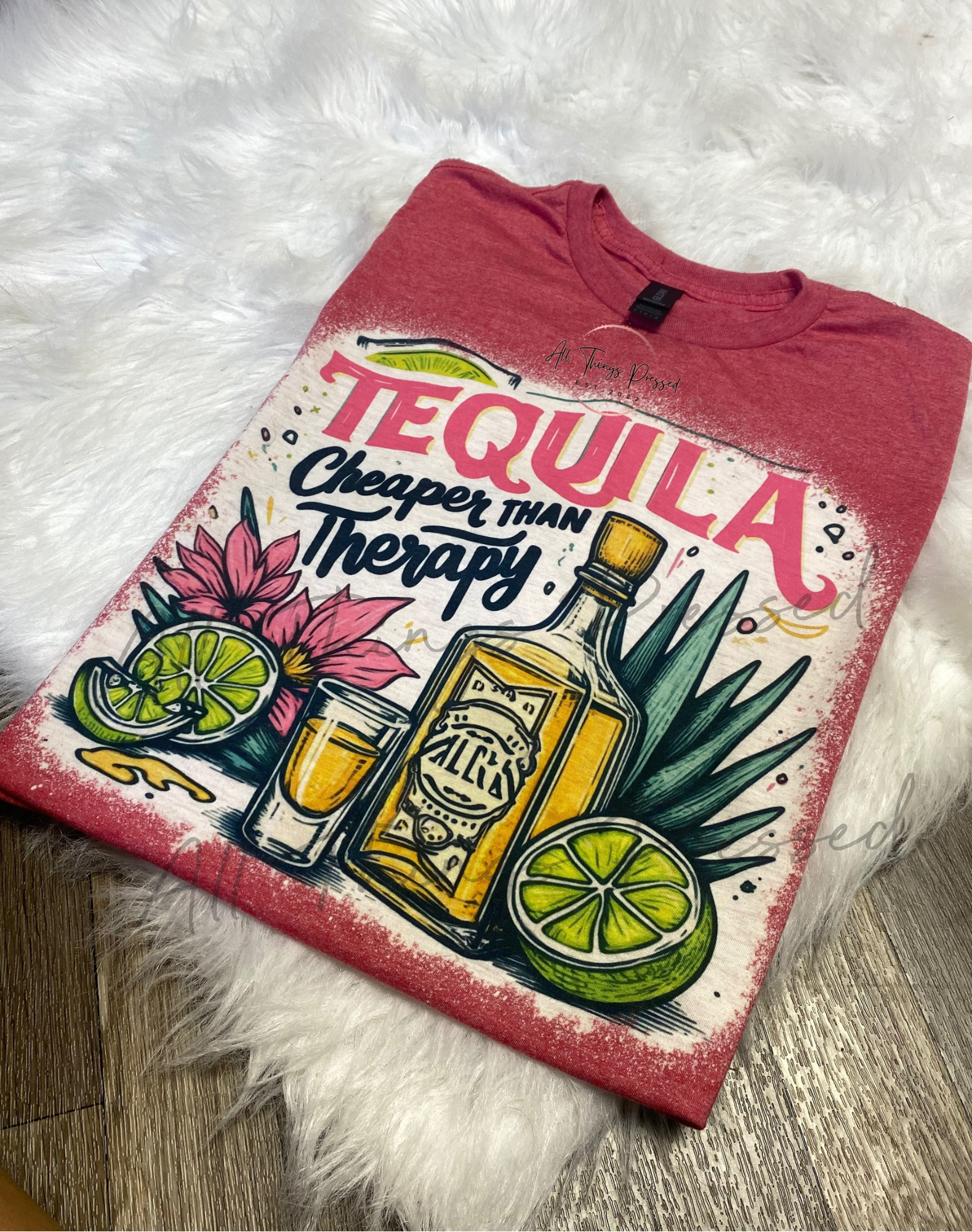 - Bleaching process. Every shirt will vary on how they bleach and be unique.