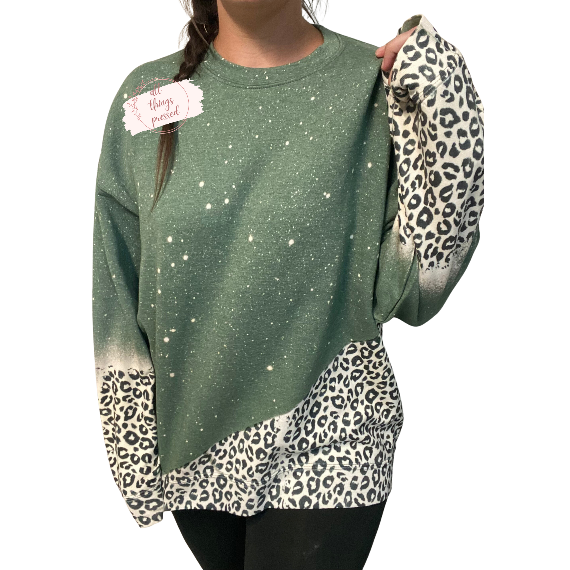 - cheetah print side swept front and back, fro my and back sleeve detailing.