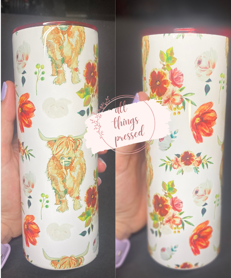 Floral Highland Cow Tumbler