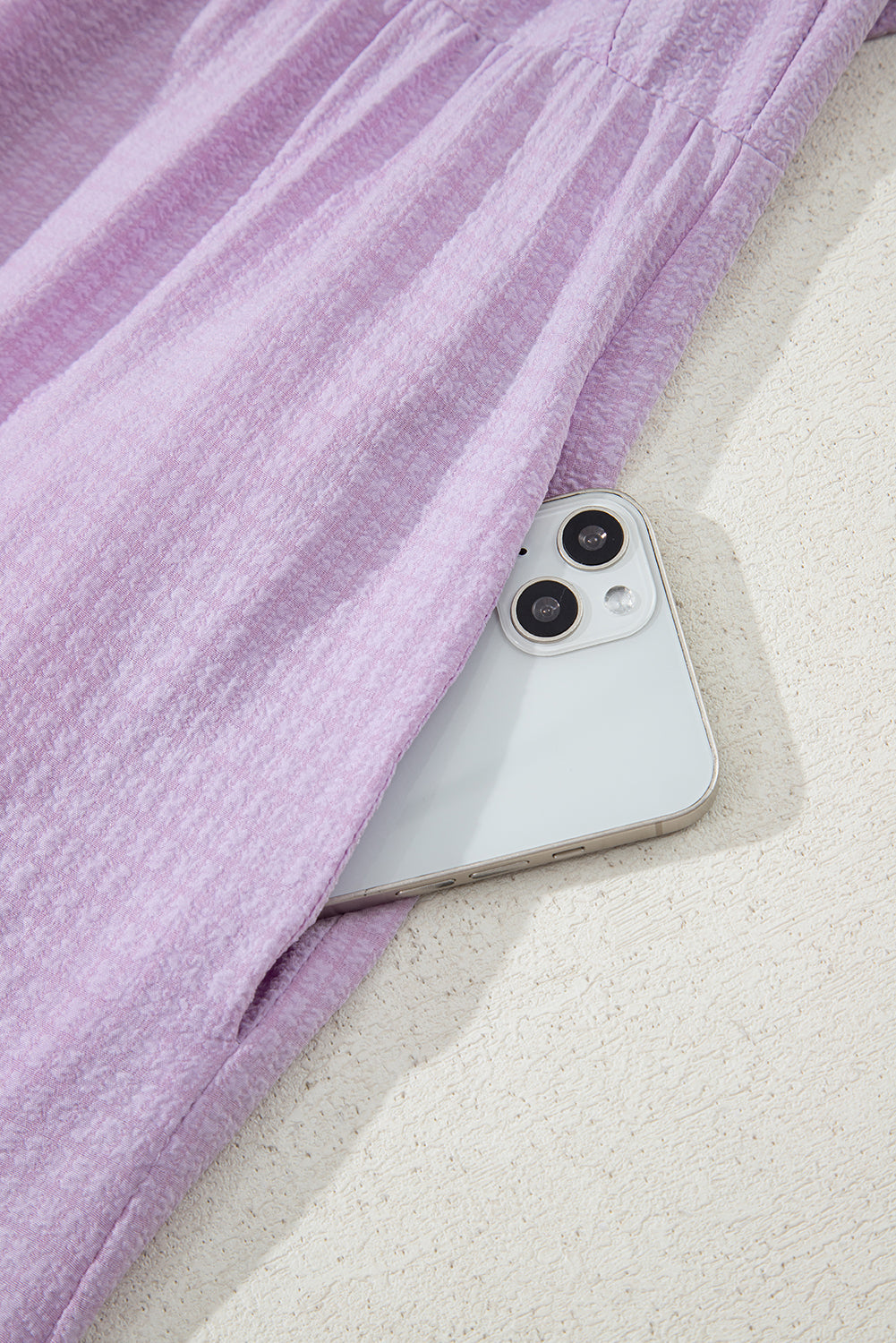 Effortlessly elegant, this purple maxi dress features a lightweight, subtly textured fabric that drapes beautifully for all-day comfort. The smocked square neckline and ruffled drop sleeves offer versatile styling—wear them on or off the shoulder for your preferred look. A relaxed, flowing silhouette flatters various body types, while hidden side pockets add practical convenience. Perfect for summer occasions, this dress combines style with wearability.