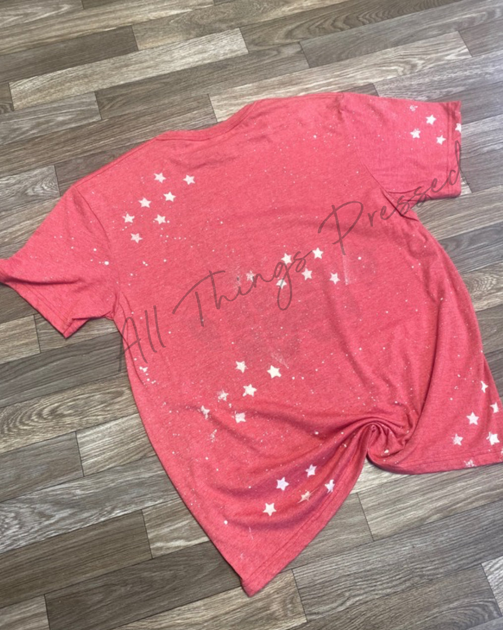 - Bleaching process. Every shirt will vary on how they bleach and be unique.