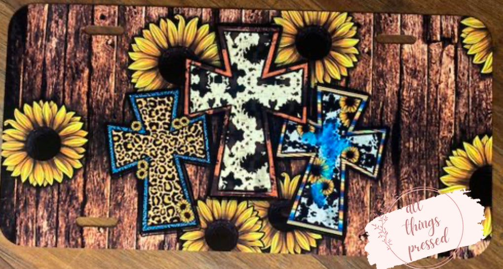 Sunflowers & Crosses License Plate